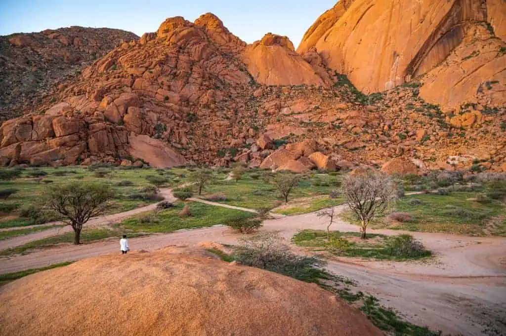 Aber dafür riesige Stellplätze umgeben von der einzigartig bizarren Felsenlandschaft der Spitzkoppe. Fernab von größeren Ortschaften könnt ihr hier einen einzigartigen Sternenhimmel erleben.