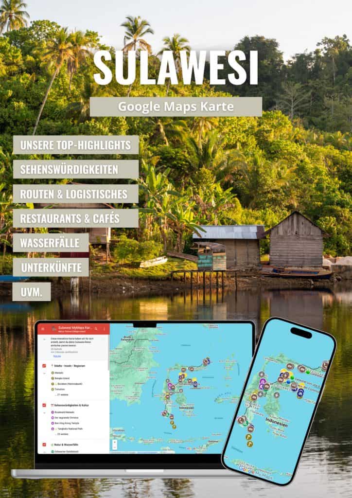 Sie vereint alle Orte, Tipps und Erfahrungen in einer interaktiven Google Map. Ideal für Selbstfahrer, Backpacker und alle, die Sulawesi individuell entdecken wollen.
